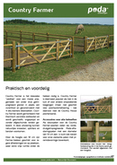 Country Farmer is het praktische "weidehek" voor een lage prijs. Met een hoogte van 92 cm zijn de Farmer poorten lager dan de overige series. De constructie is eenvoudiger, met vier iets smallere dwarslatten. Country Farmer is ideaal voor omheiningen met lage hoogtes, wanneer onder het hek een bepaalde ruimte open moet blijven en voor ingangen waarbij de poort niet zo dominant hoeft te zijn.
